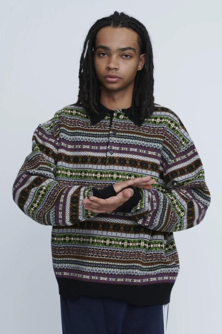【25AW】【INSCRIRE / アンスクリア】 FAIRISLE POLO SWEATER - BLACK MULTI