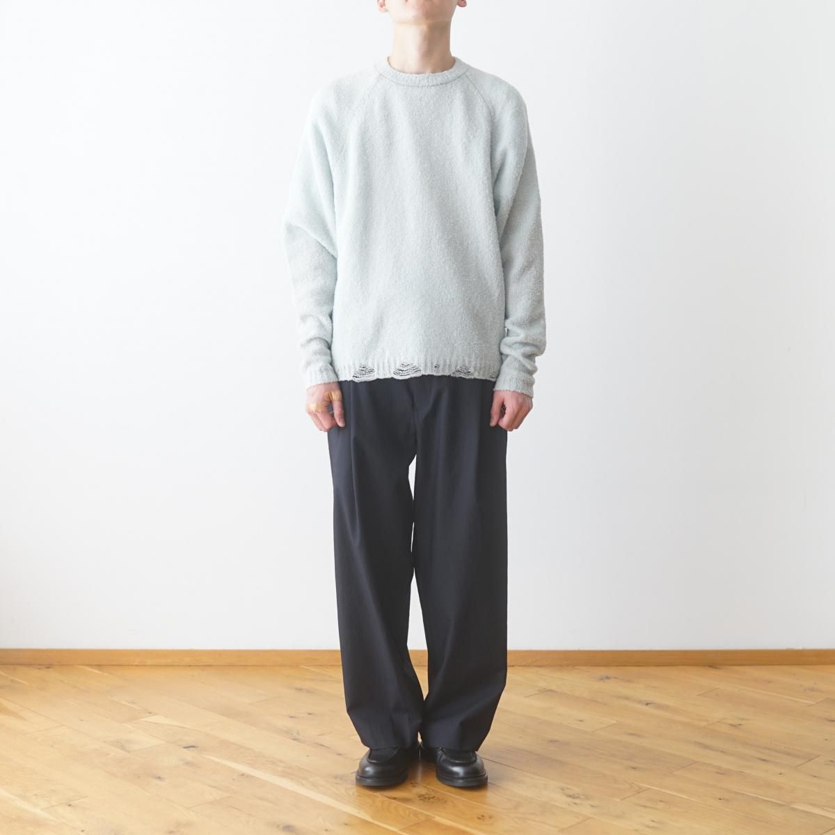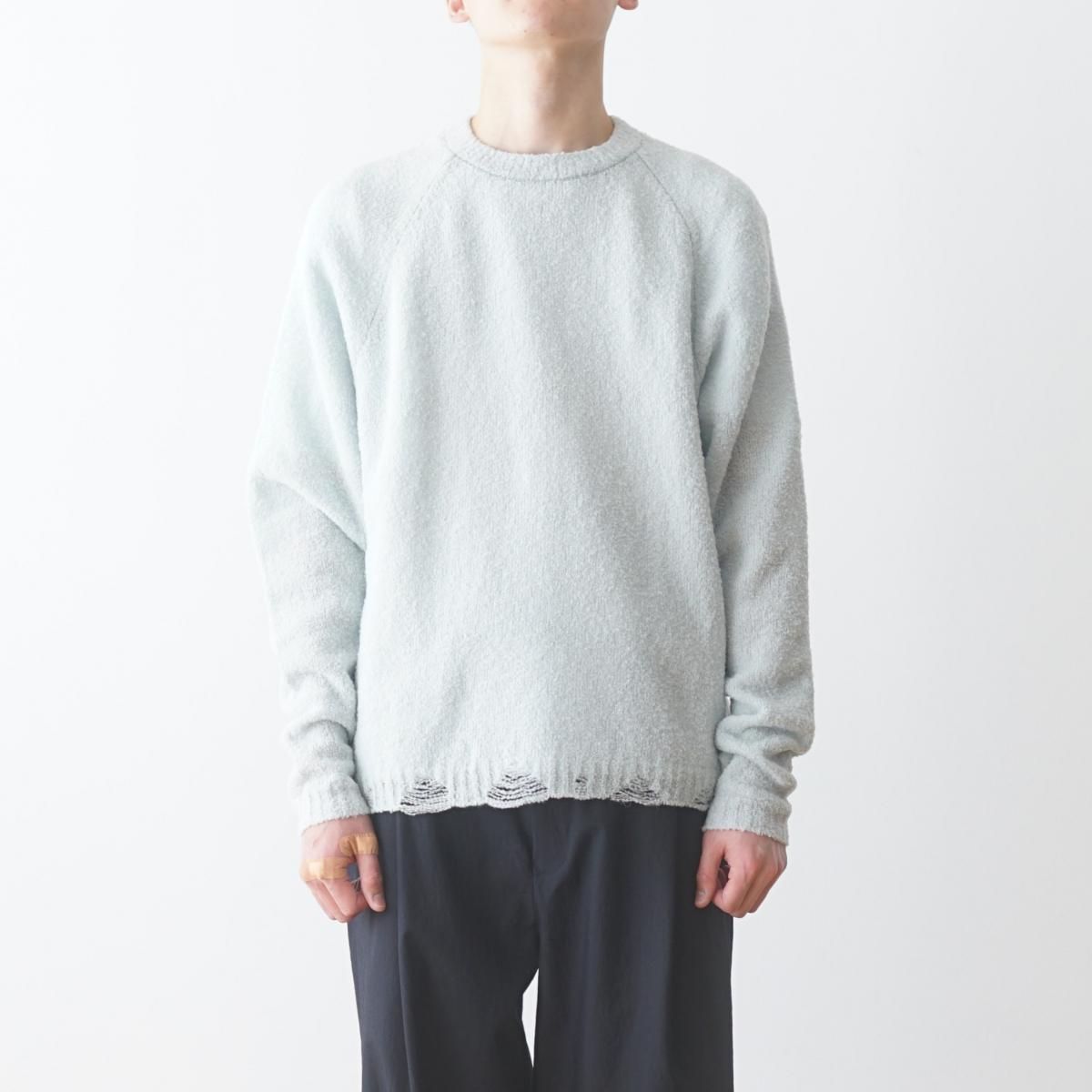 【MEMBER ONLY】【WELLDER / ウェルダー】 DAMAGE DESIGN PULL OVER KNIT - MINT GREY