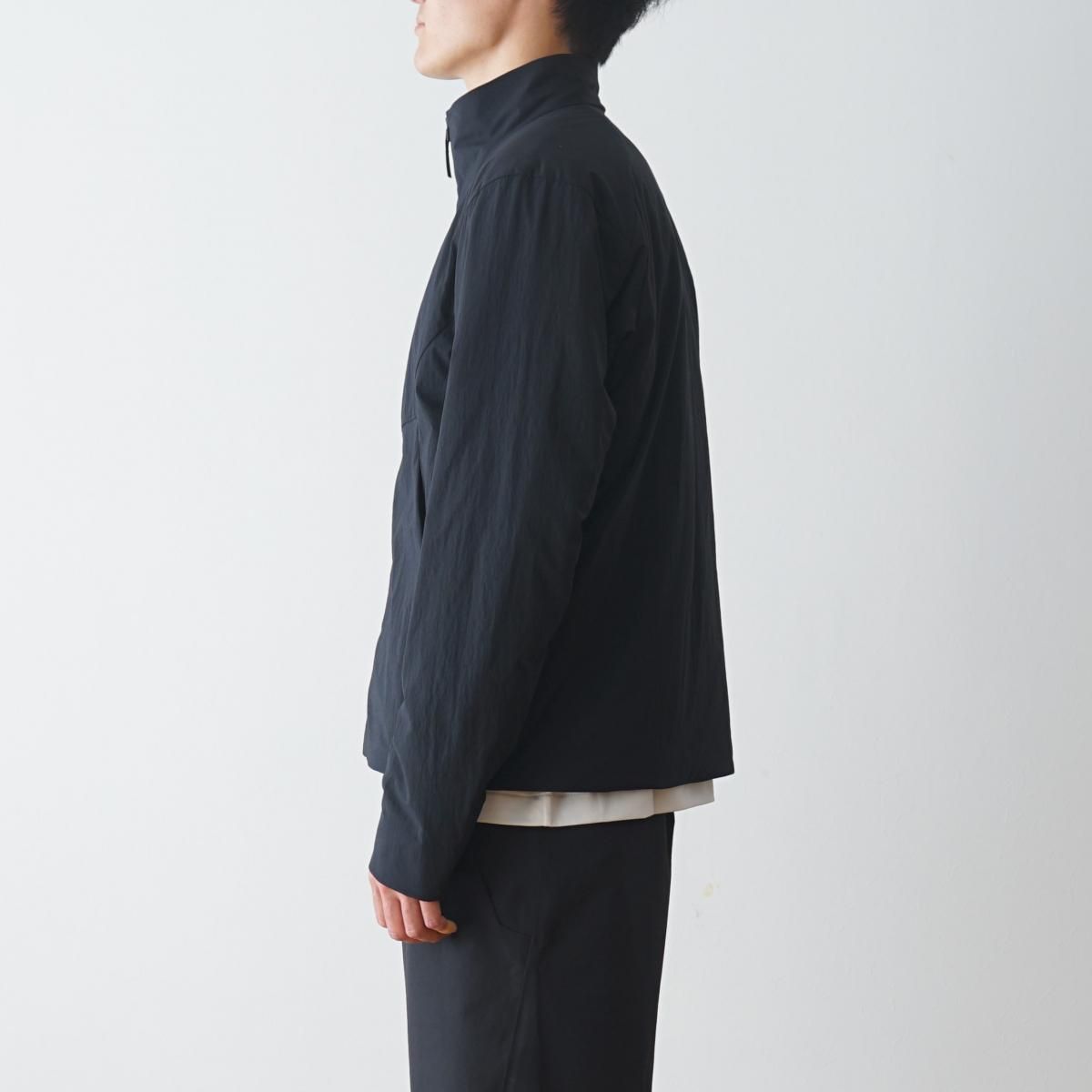 ARC'TERYX VEILANCEのMIONN INSULATED JACKETです。 立体裁断と伸縮性のある素材使いによってストレスフリーな着心地を実現しています。 前立て、両胸ポケットのZIPともに正面に露出させず雨風の侵入を防ぐことを計算されたフロントデザイン。シャツとブルゾンの中間をいくような極薄軽量の中綿入りミッドレイヤーとして、軽いアウターとしても防寒性あるインナーとしても使える機能とファッションの融合した一着です。機能とファッションの融合による洗練された革新的なミニマルデザインプロダクトです。水洗い可能となります。