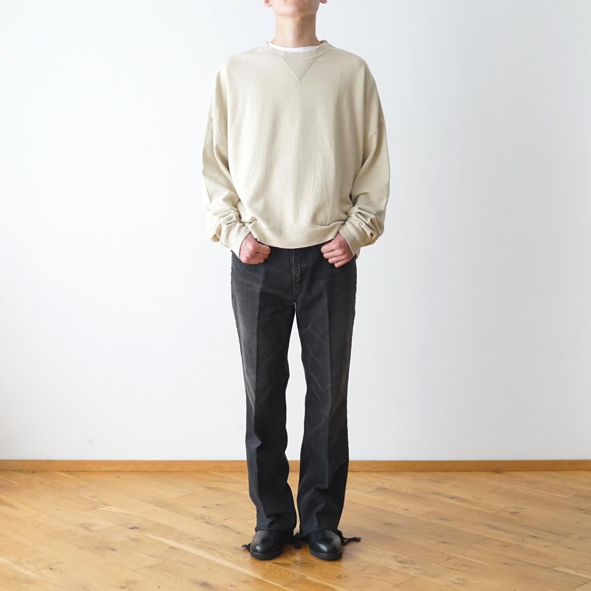 INSCRIREより、002 FLARE DENIMのご紹介です。INSCRIREの定番であり代表的なデニム。14オンスのヘヴィーウエイトの生地を使用した、ジップフライ開閉のセミフレアータイプです。嫌味のないフレアー感は、足をすらっと長く見せる美脚シルエット。