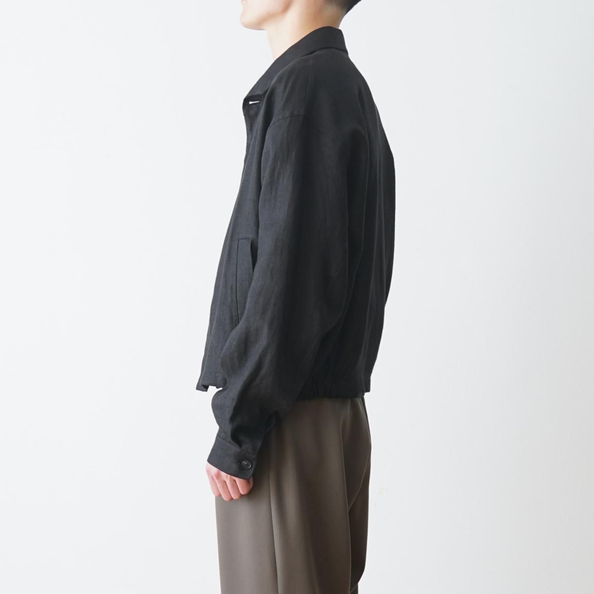 The CLASIKのSHARK COLLOR JACKETです。ヨーロッパ版オープンカラージャケットであるシャークカラージャケットは、その名の通り襟の形が鮫のヒレに似ているシャツの事で、おおよそ1960年~1980年代ぐらいまでヨーロッパ各国で使用されていたジャケットです。大ぶりな襟の形とボックスシルエットが最大の特徴で、通常の襟とは異なり身頃と襟の間に台襟がないために首元の開きが良く、いい抜け感を演出してくれます。身幅、アームにゆったりと余裕をもたせながらも着丈は短めでバランスを調整しているため、様々なシルエットのパンツとも組み合わせる事が出来ます。裏地なしのサラリとした生地感は、羽織り心地も軽く幅広いシーズンで活躍する一枚です。