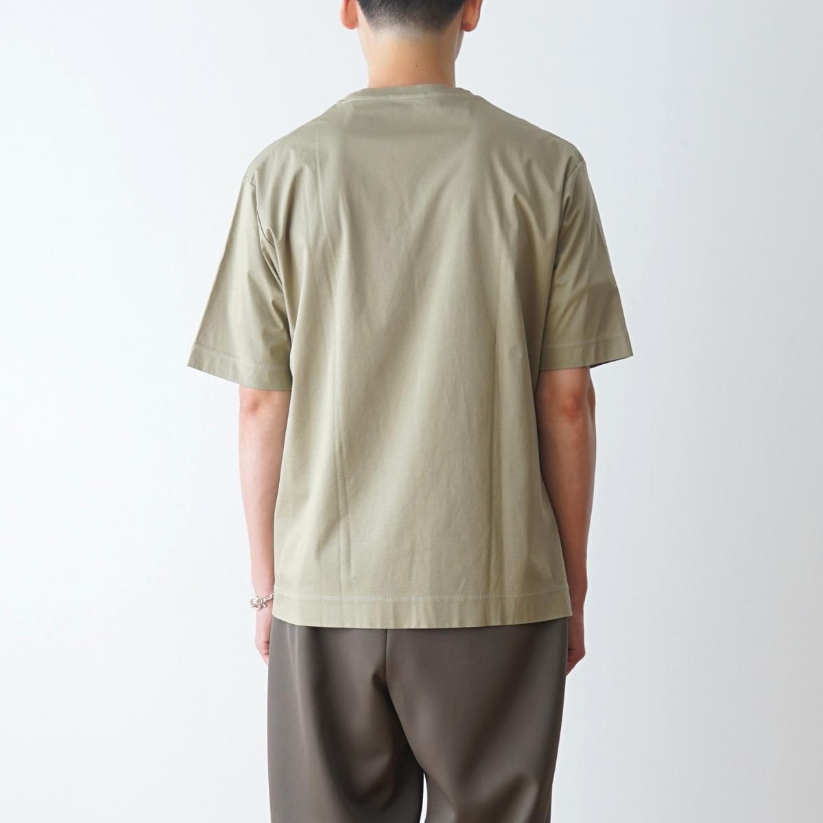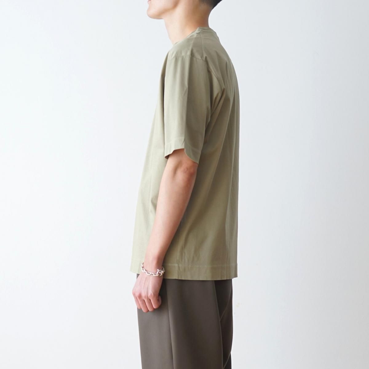 高密度なストレッチ性のあるコットン天竺生地を使用。糸の持つ光沢感を活かしながらもナチュラルでドライタッチな質感が特徴です。