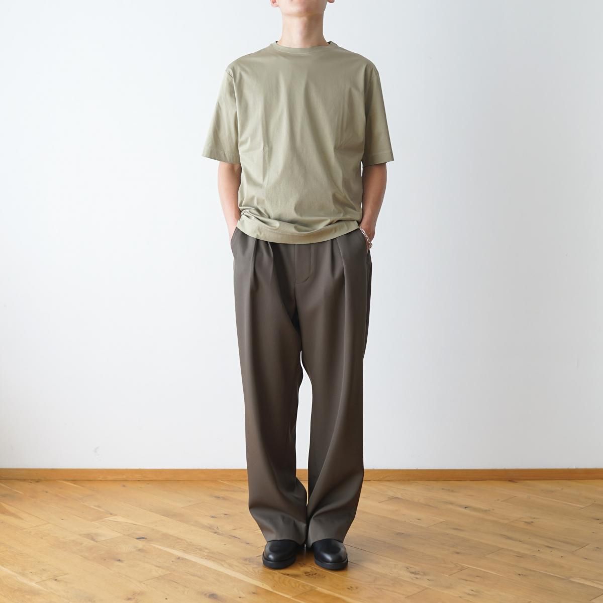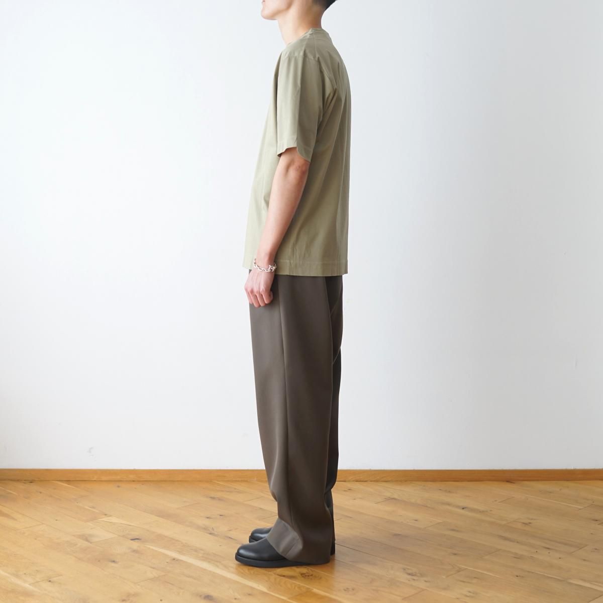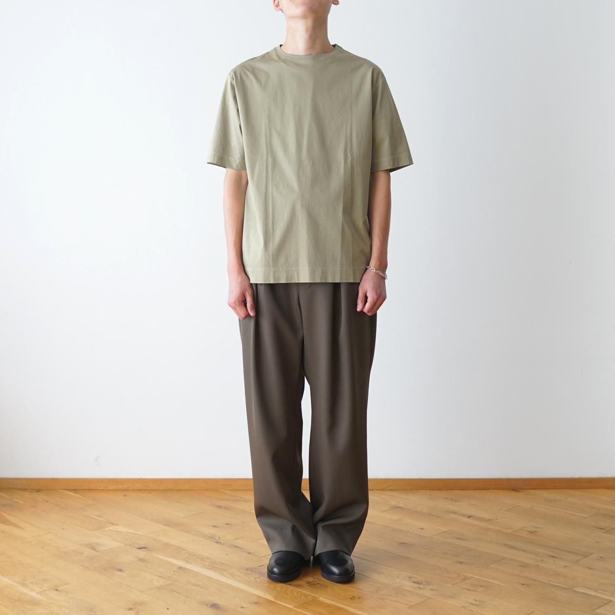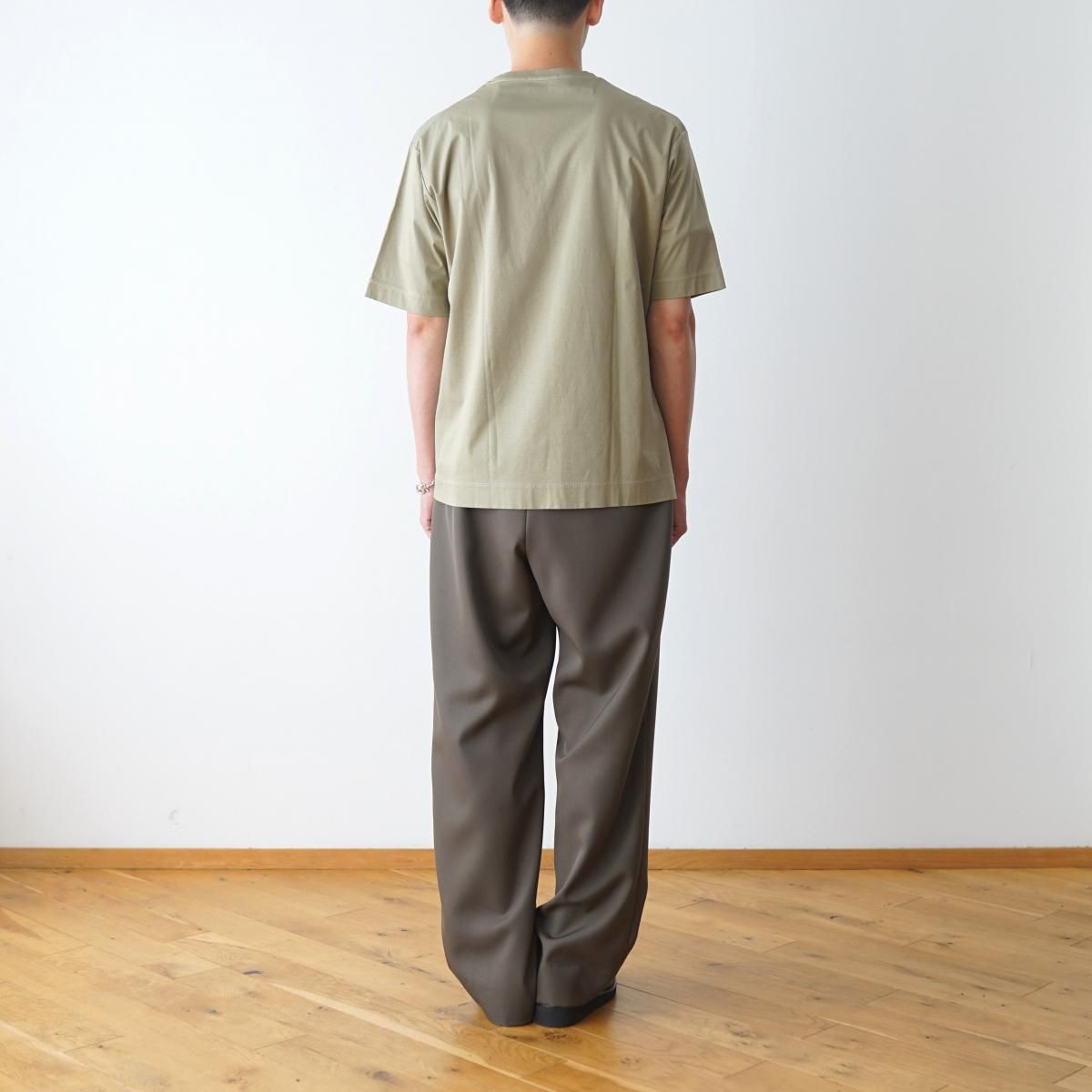 The CLASIK の GARMENT DYE T-SHIRTS です。ボックス型のシルエットや袖、裾の折り代の幅を太めにすることで上質でありながらカジュアルな印象に仕上げています。