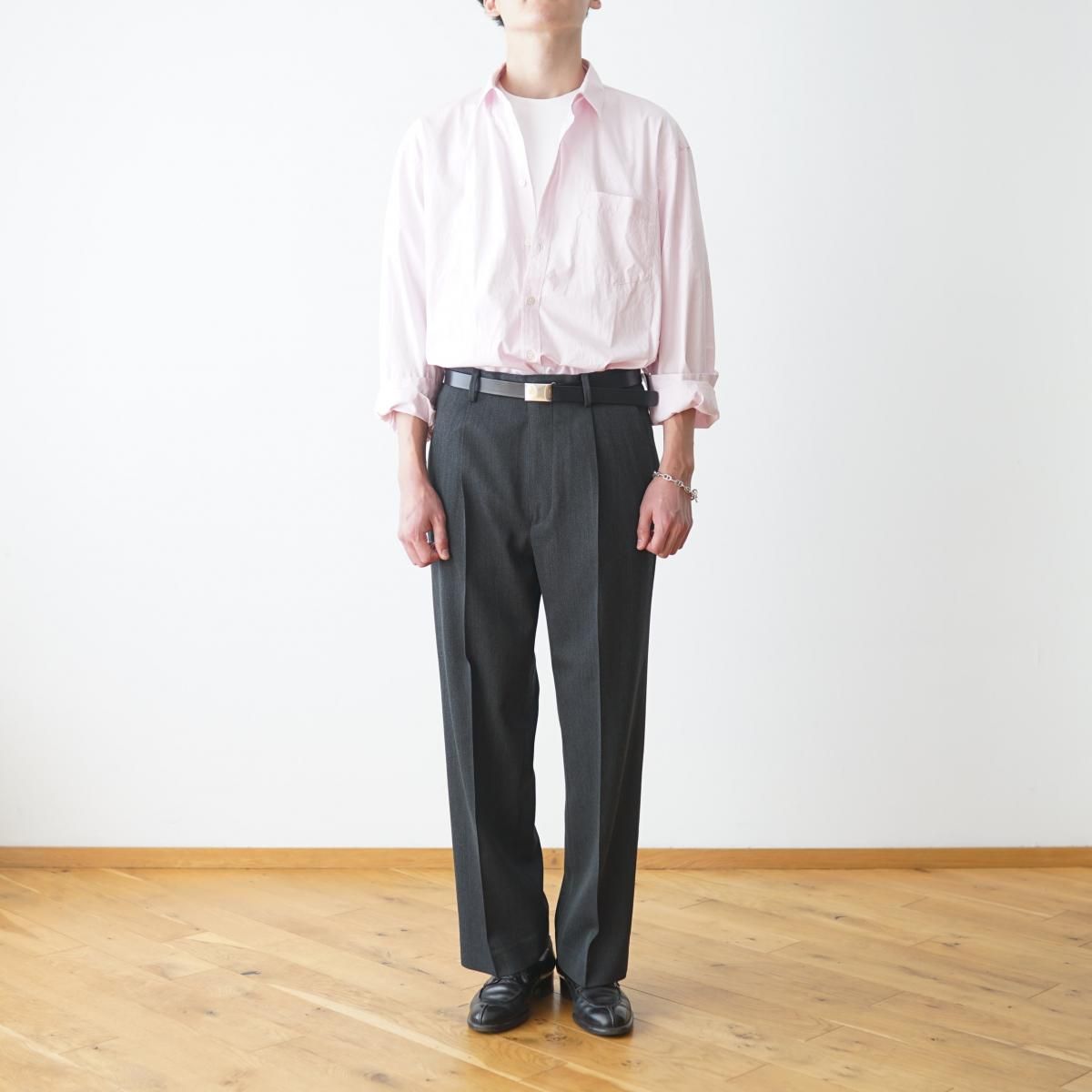 製品で特殊な洗いを施した、天日乾燥の洗いざらしのような雰囲気が特徴のシャツ。オーバーサイズなリラックスしたシルエットを採用しました。ドレスシャツ工場で、美しく見える仕上げにこだわりながら、ステッチはあえて50番手ステッチと環縫いを採用し、ダンガリーシャツのように仕上げています。タンブラー乾燥かけても縮まず、何度でも心地よいシワ感とドライなタッチが復元します。
