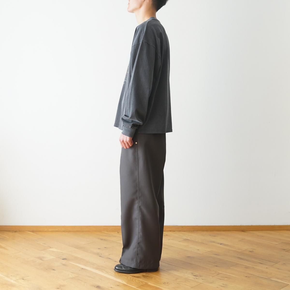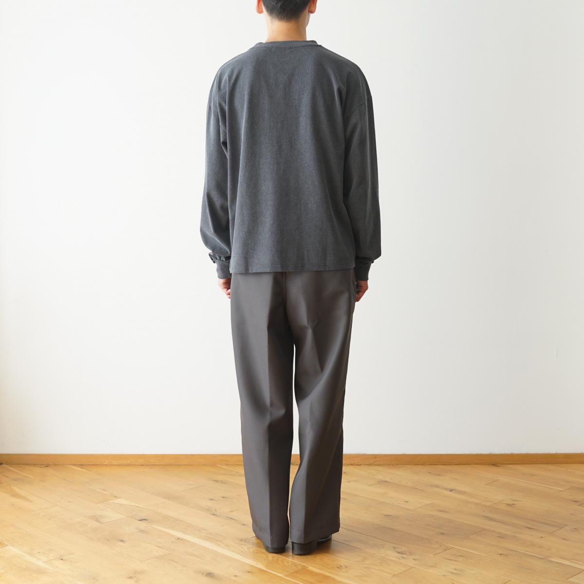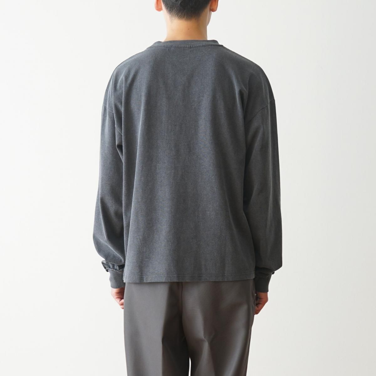 2025AWシーズンテーマを象徴する一着。20/1天竺を使用し、製品染めを思わせる加工を施すことで、フェード感のある独特の風合いに仕上げた。着込むほどに生地が馴染み、時間とともに表情が深まっていく。