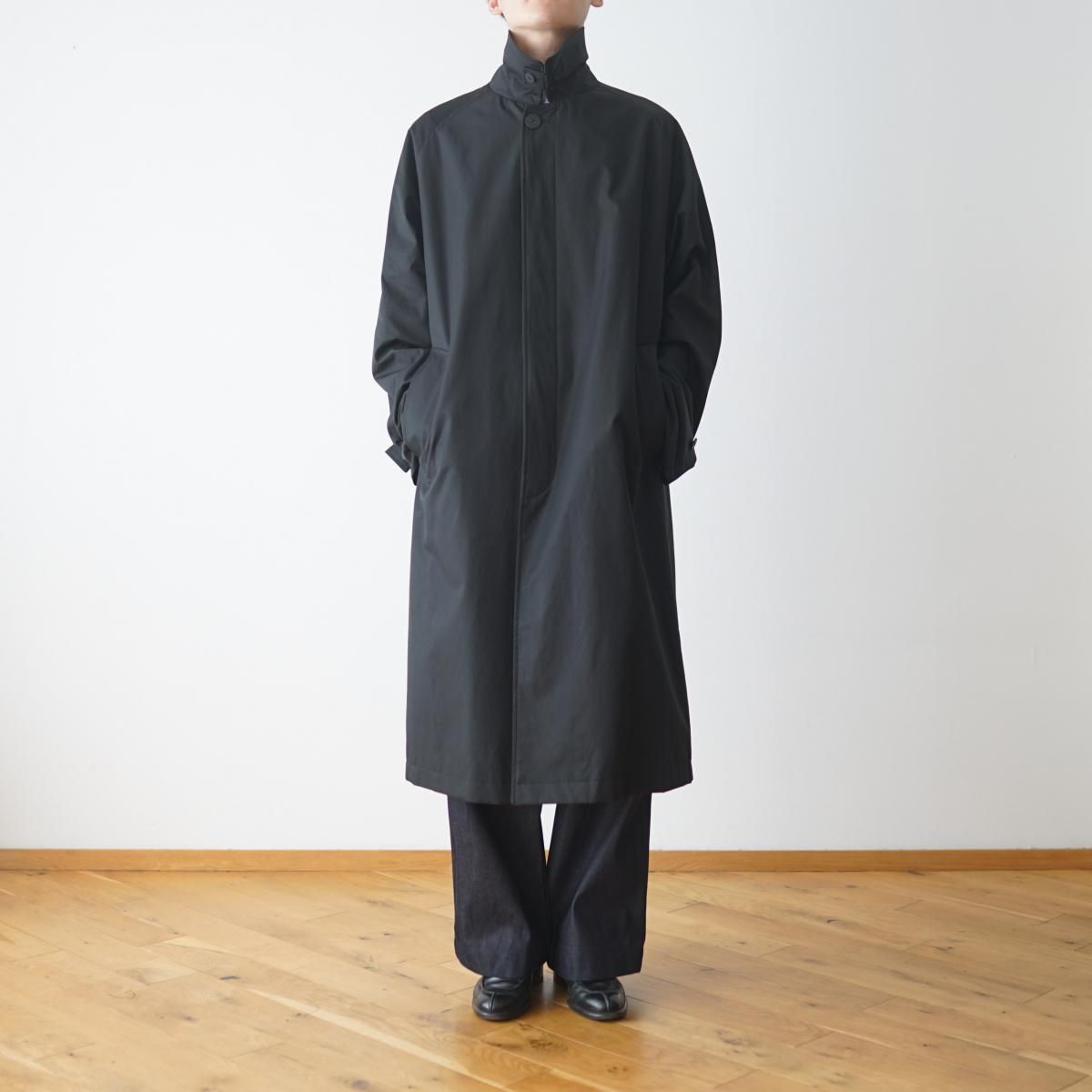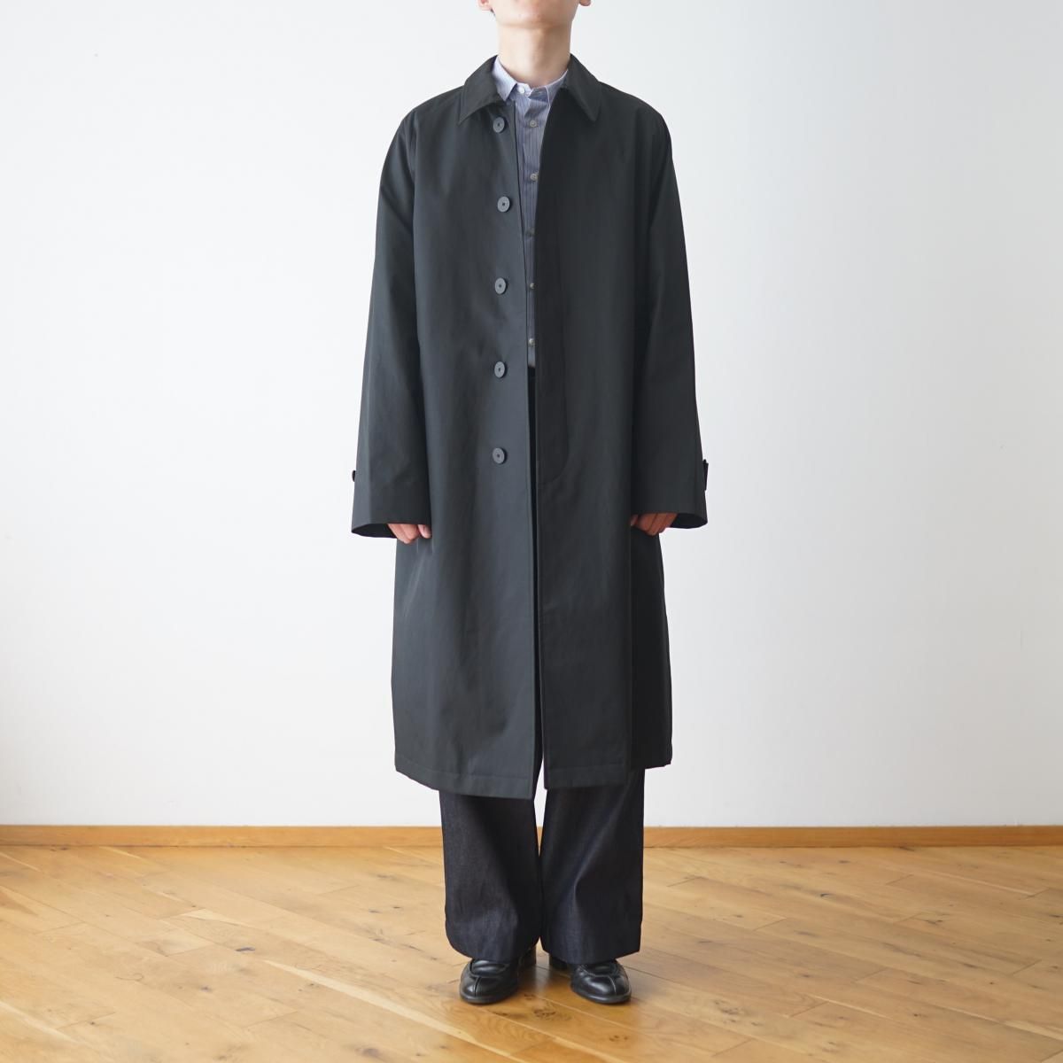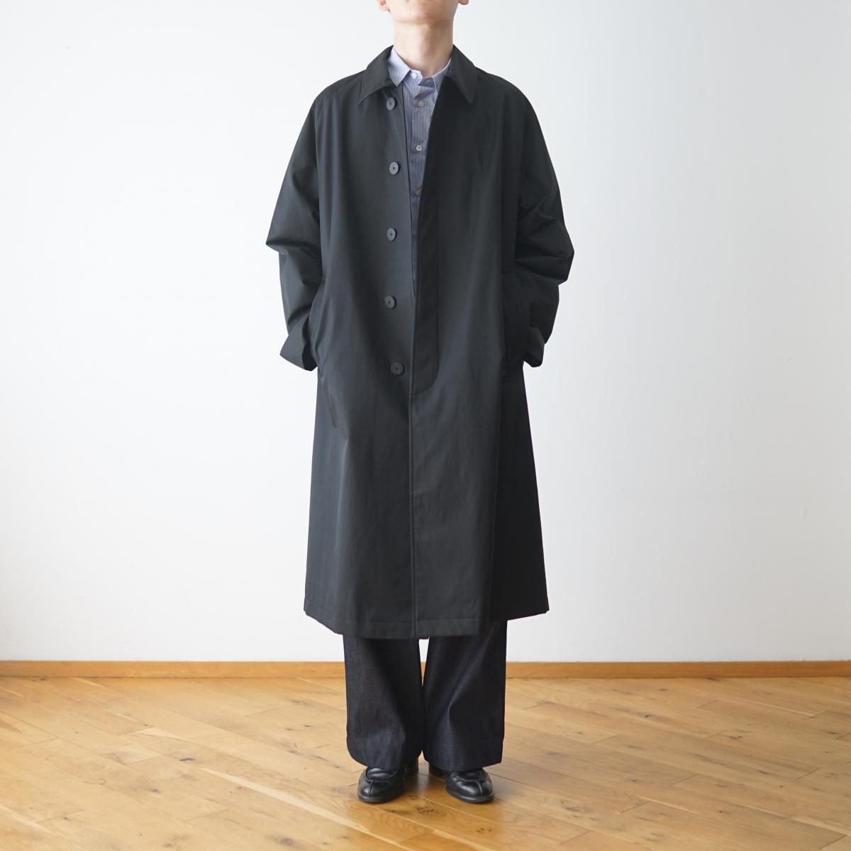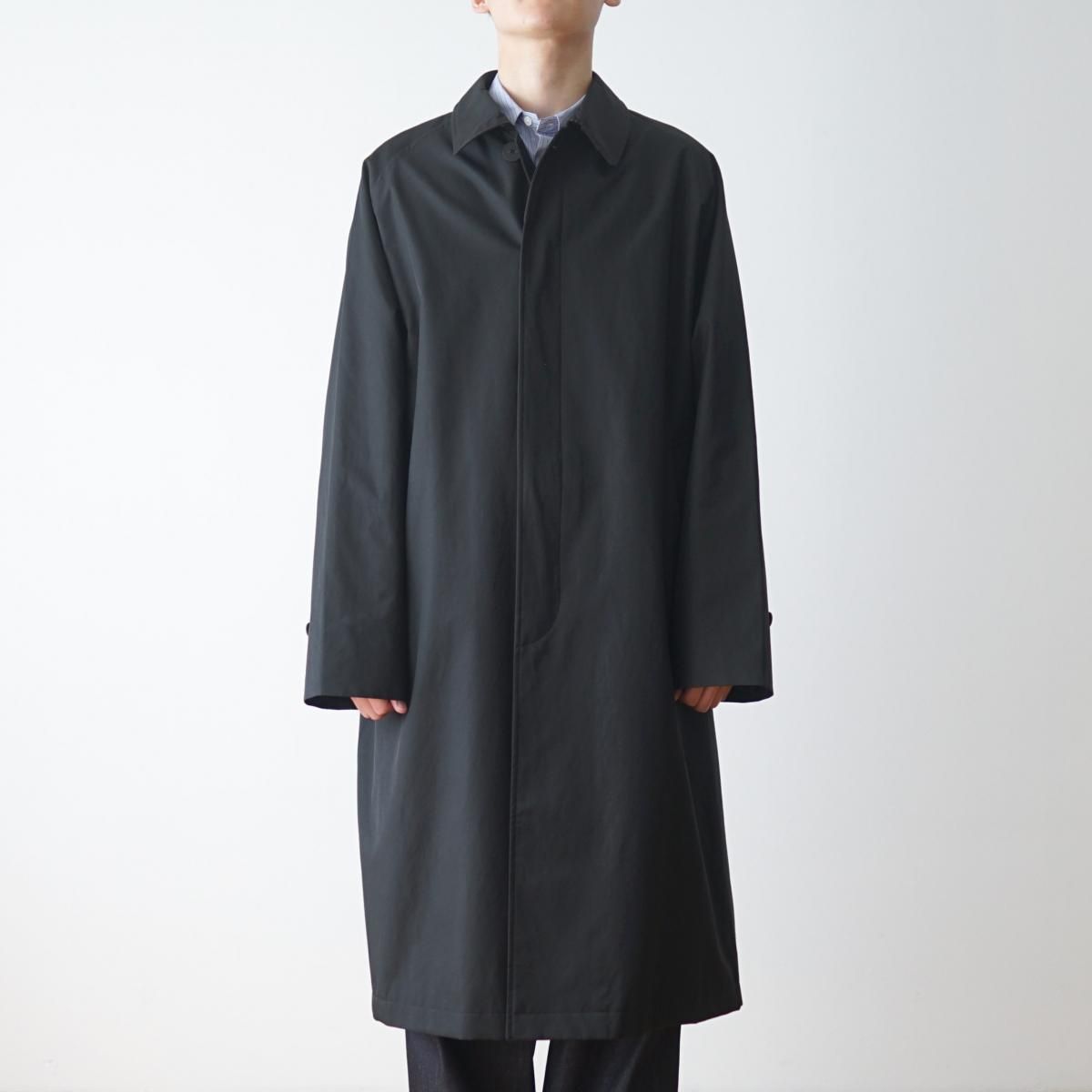 スタジオニコルソンの「MODERN CAR COAT」です。ロング丈のコートスタイルに機能性のある生地を使用し、動きやすさとエレガンスを両立したSTUDIO NICHOLSONらしいミニマルな一着。機能的なディテールとして、袖口のボタン仕様や、襟元をしっかり閉じられるチンストラップを装備。防風性を高めつつ、クラシックな表情をプラスしています。シンプルながら存在感のあるデザインは、カジュアルにもドレススタイルにも自然に馴染む万能アウターです。