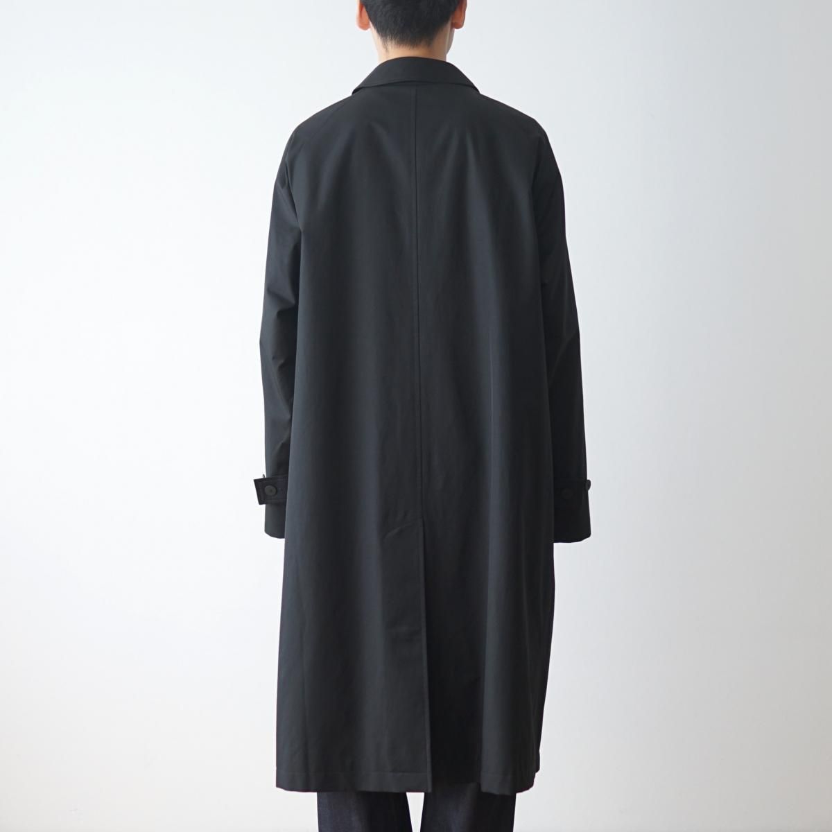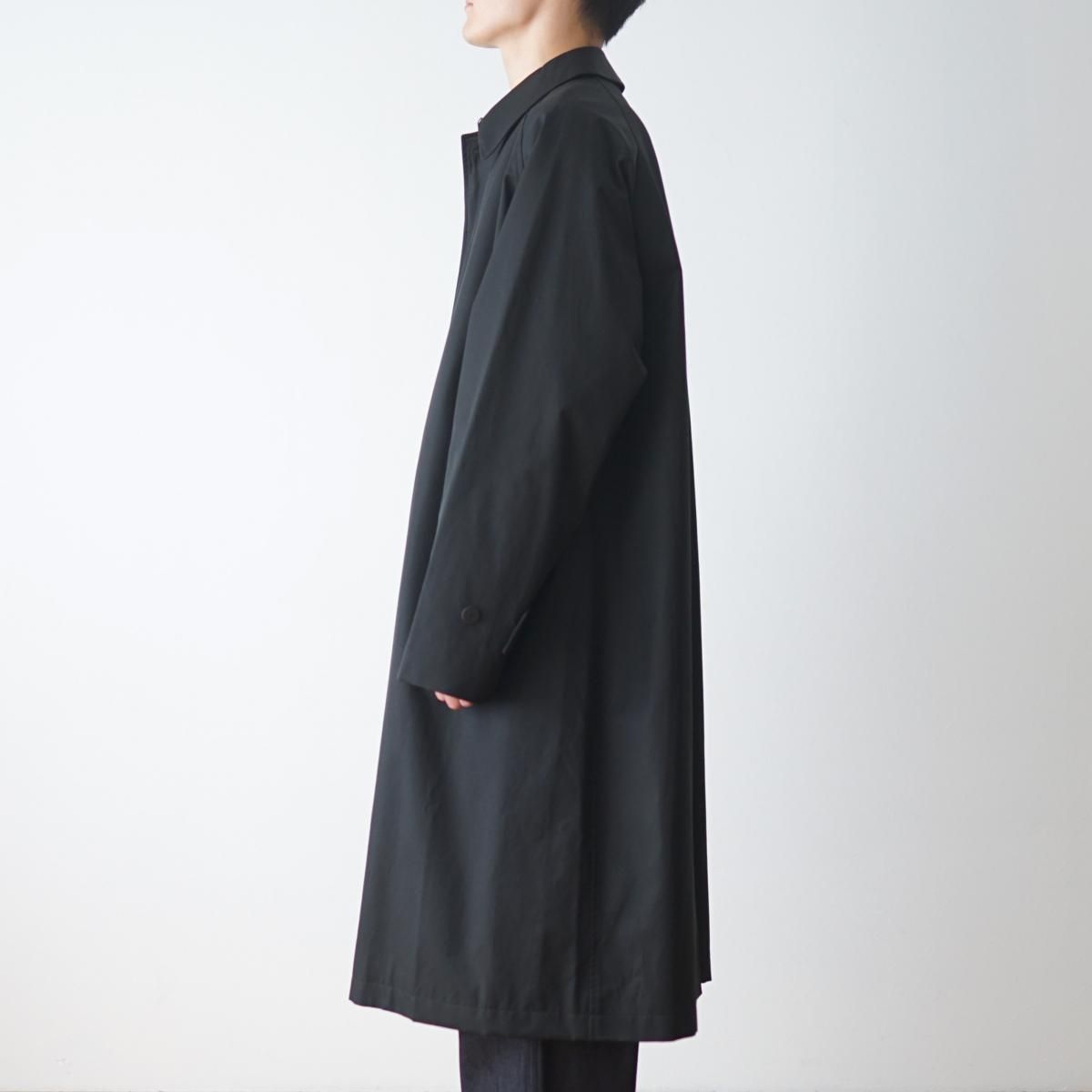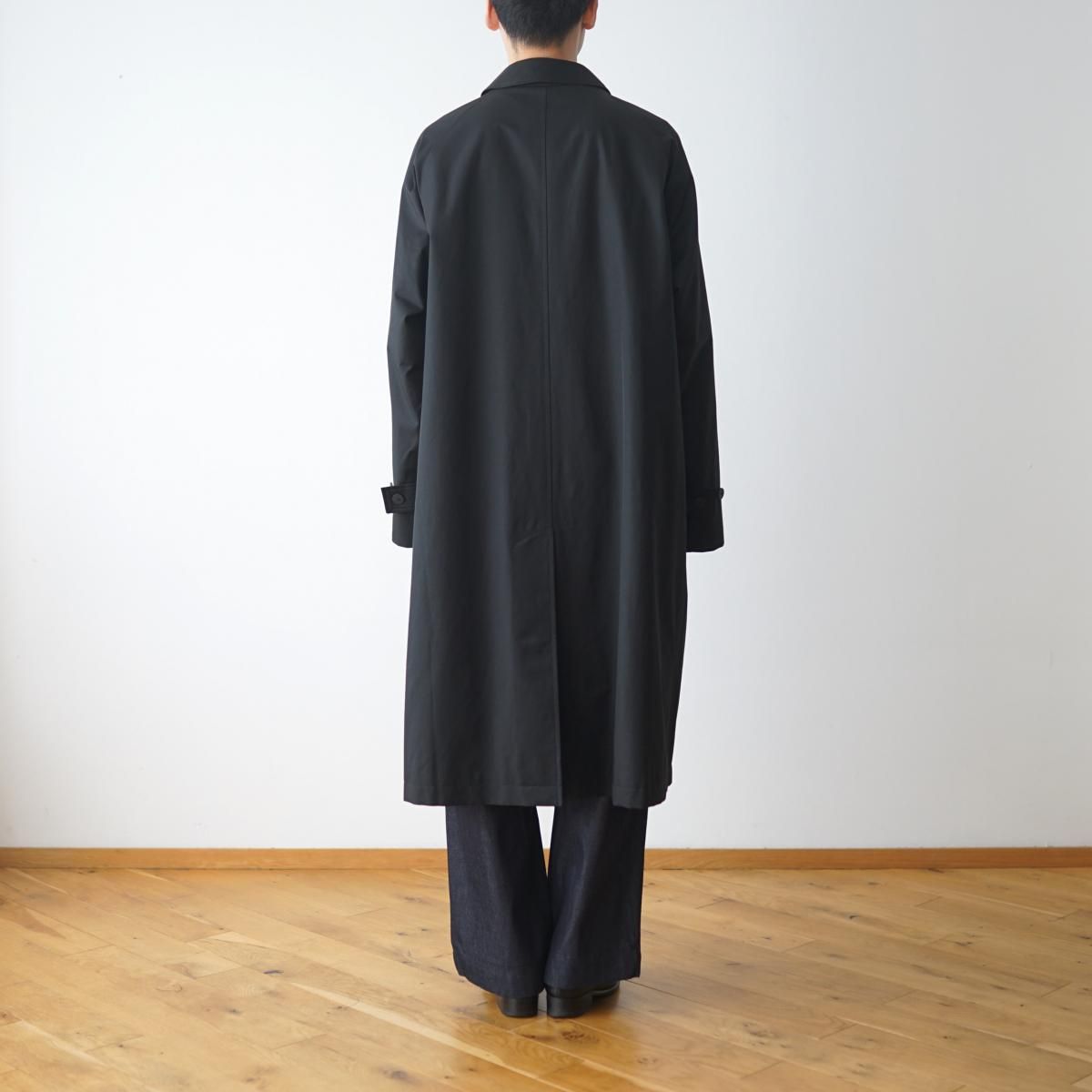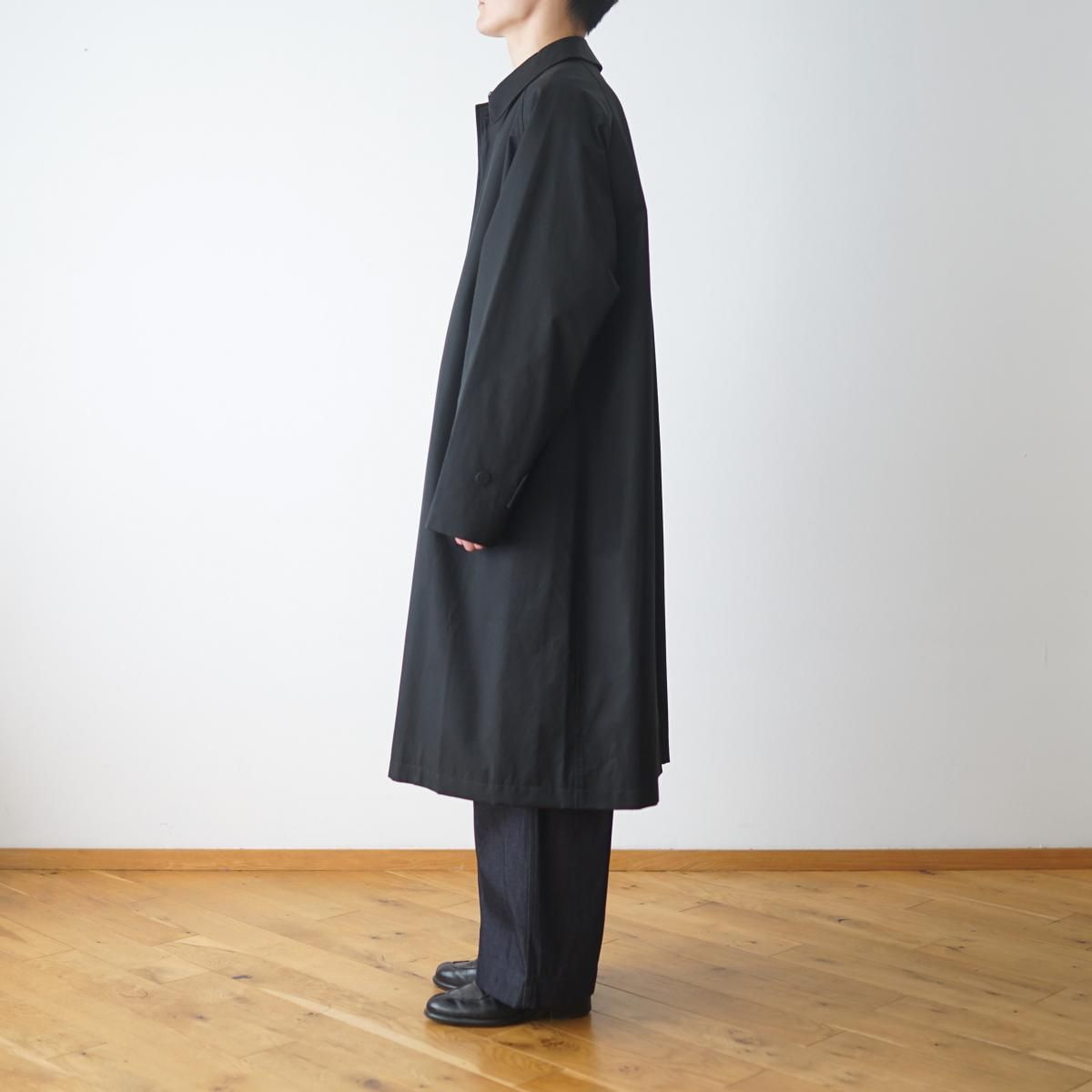 スタジオニコルソンの「MODERN CAR COAT」です。ロング丈のコートスタイルに機能性のある生地を使用し、動きやすさとエレガンスを両立したSTUDIO NICHOLSONらしいミニマルな一着。機能的なディテールとして、袖口のボタン仕様や、襟元をしっかり閉じられるチンストラップを装備。防風性を高めつつ、クラシックな表情をプラスしています。シンプルながら存在感のあるデザインは、カジュアルにもドレススタイルにも自然に馴染む万能アウターです。