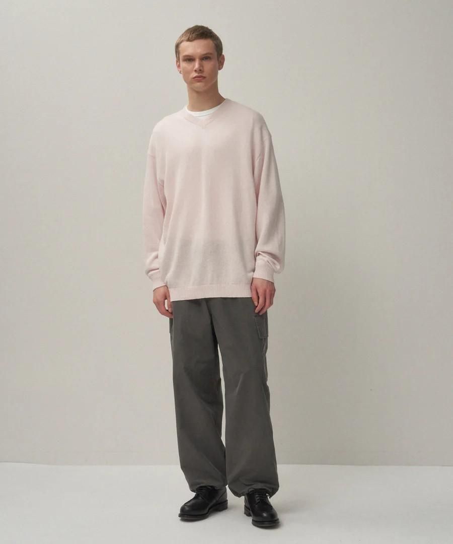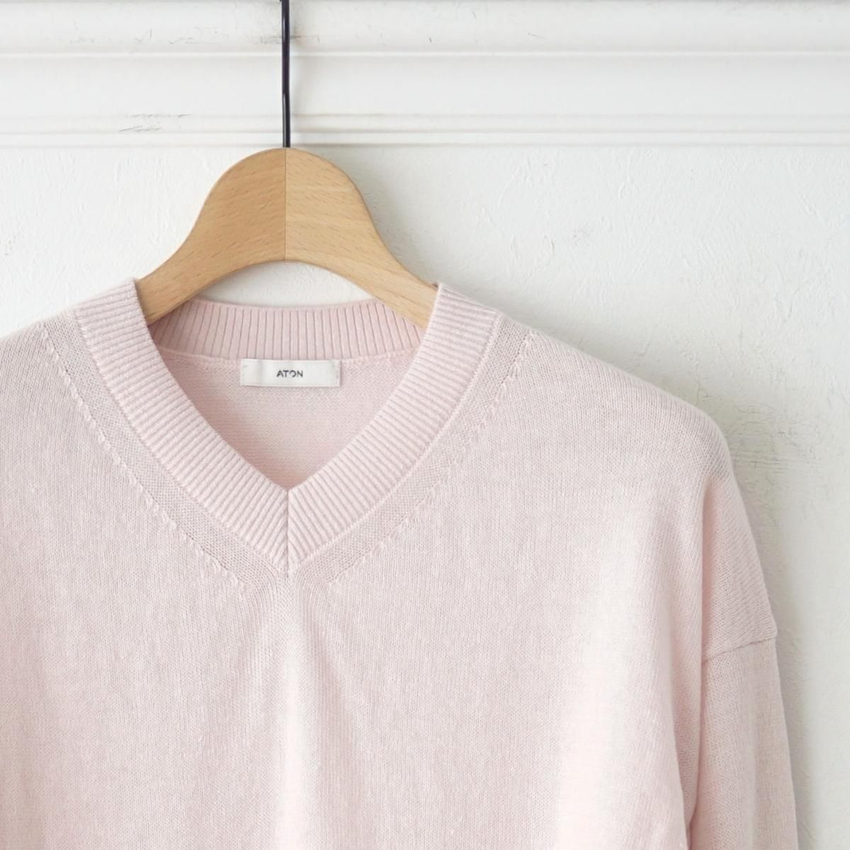 【11/1発売】【25AW】【ATON / エイトン】 LINEN WOOL BRUSHED | V-NECK SWEATER - PINK