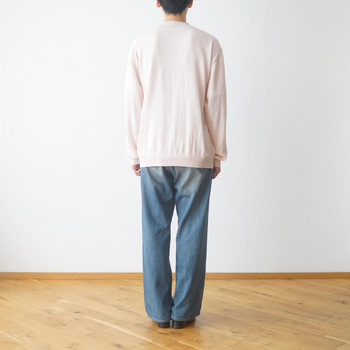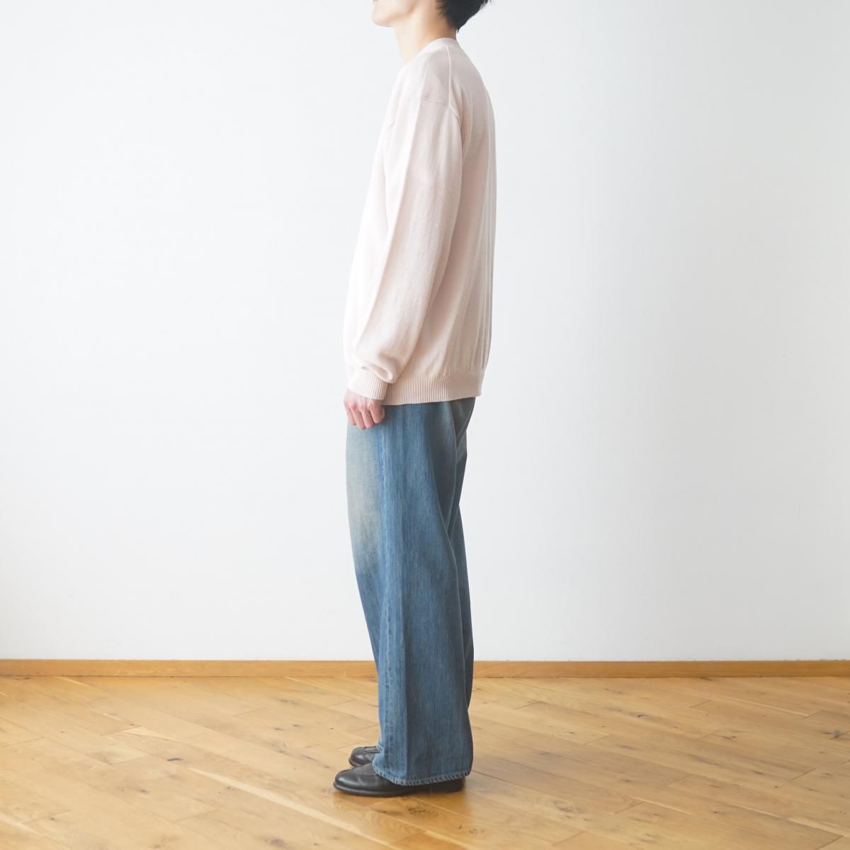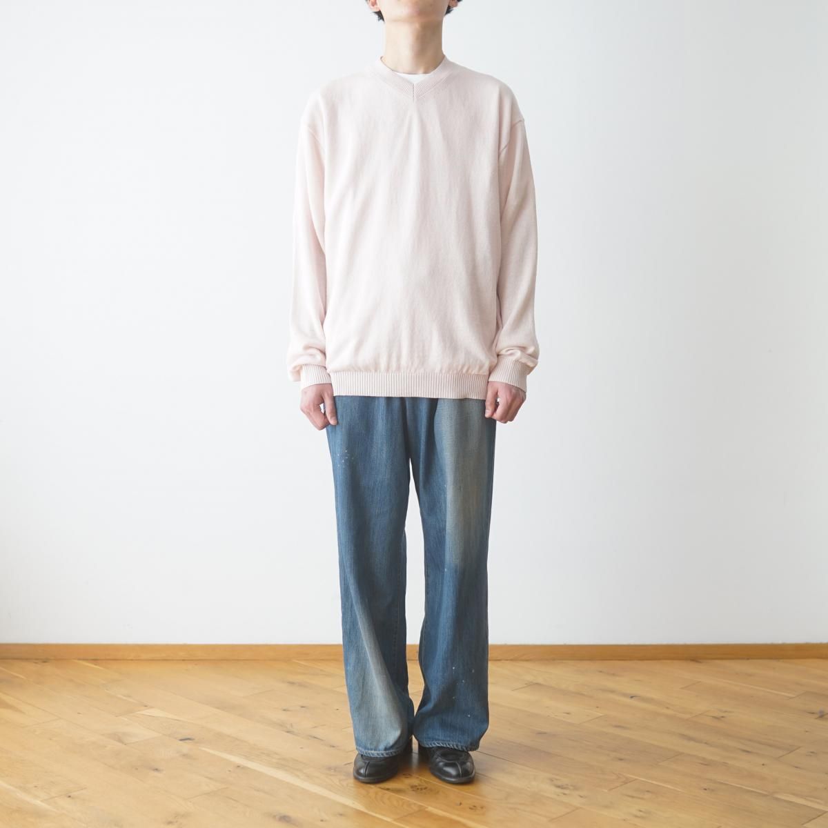程良いリラックス感が特徴のVネックセーター。天竺10ゲージを採用し、やや度詰めでしっかりとした肉感と着心地に仕上げました。衿は太めのリブダブル付けで、裾リブが締まりすぎておらず、カットソーのようなシルエットを採用しています。