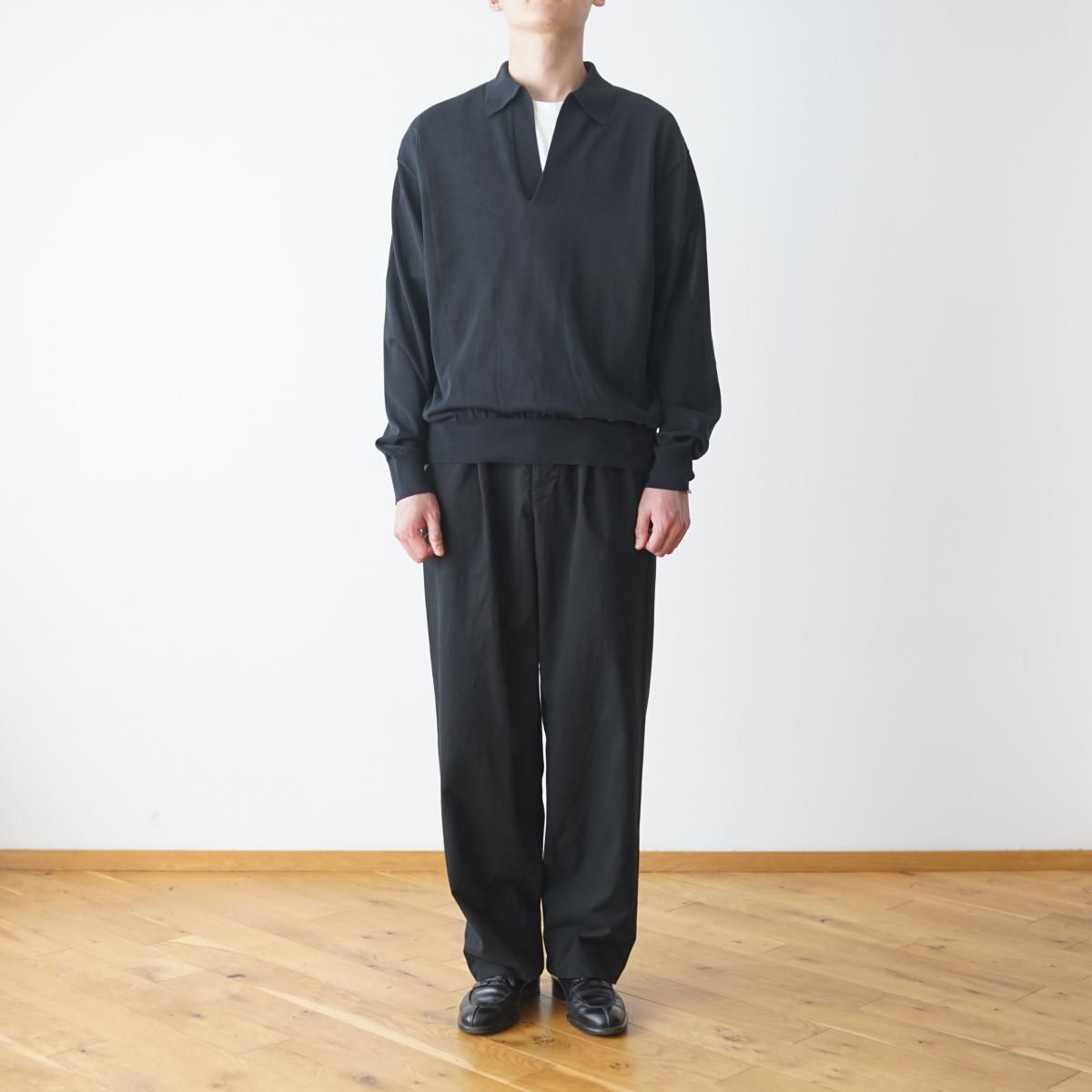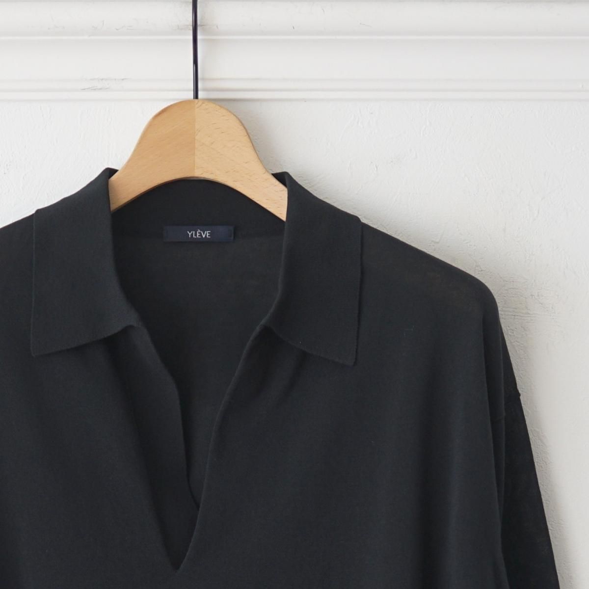 【9/10発売】【25AW】【YLEVE / イレーヴ】 SHEER RIB KNIT SKIPPER POLO - BLACK