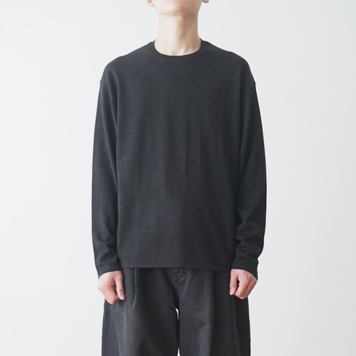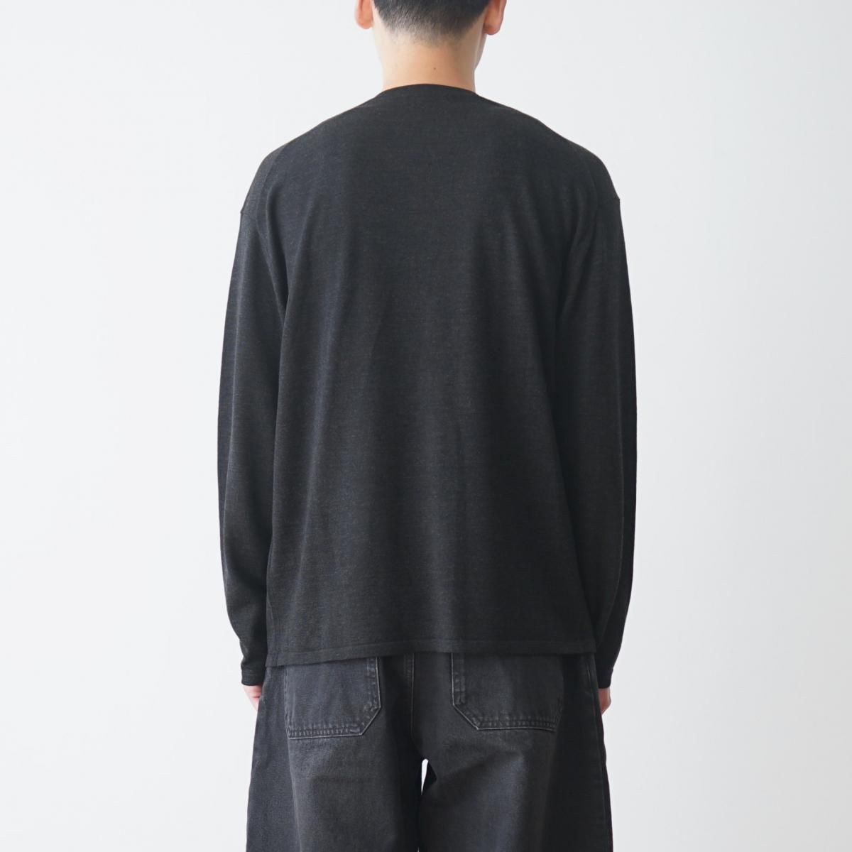 SUPER120'Sウールを使用し、軽さとしなやかな風合いを併せ持った素材です。ベーシックなゆったりしたPOニットはロングスリーブTシャツをモチーフに作りました。袖口をロールアップしたり、裾をインしたりして着ることが出来ます。