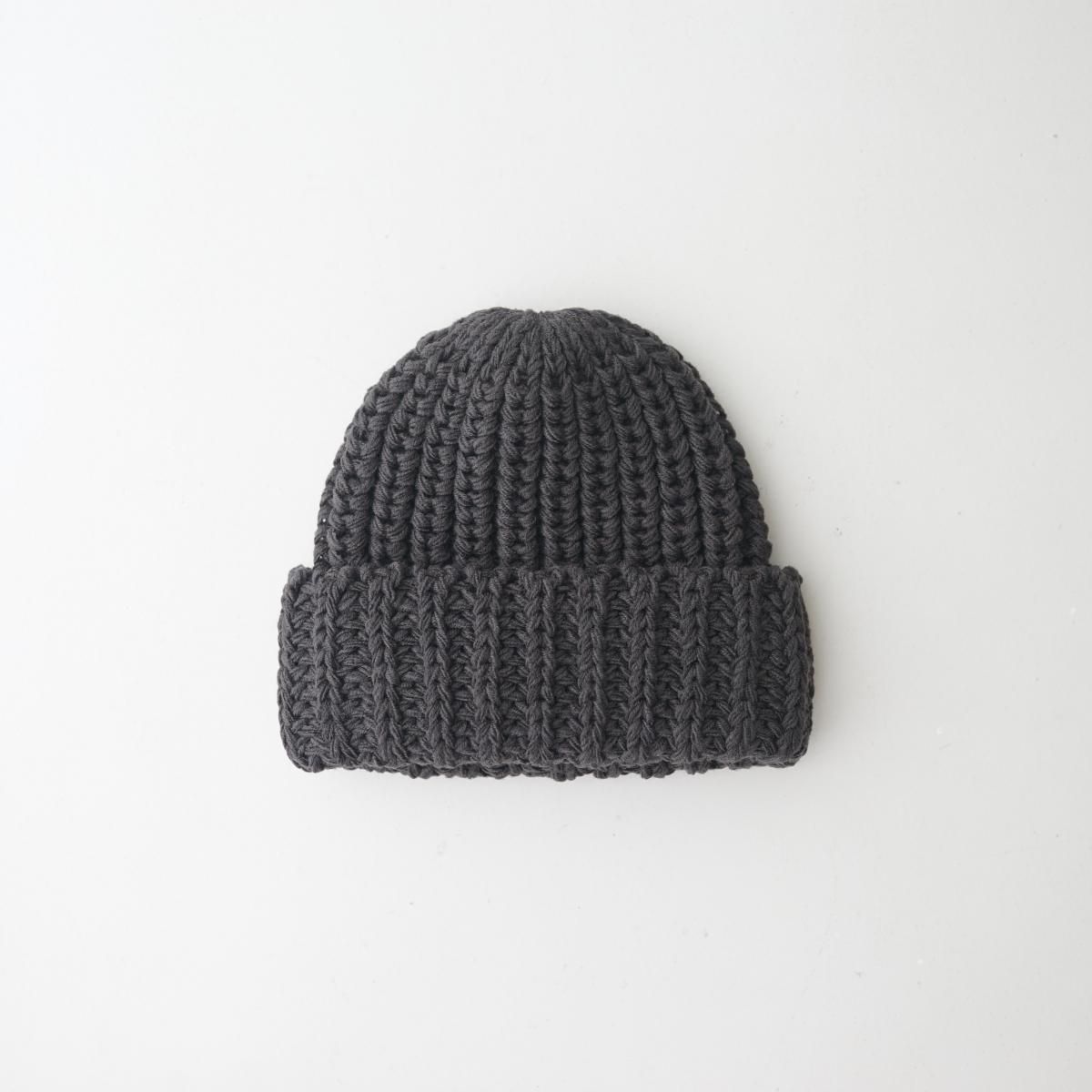 COMESANDGOES のゆるく被ることの出来るイージーニット帽です。1.5ゲージの片畦編み。折り返し部分は約8cm。ウールアクリルの軽く、楽に被ることの出来る生地。ジェンダーレスでご着用いただけます。
