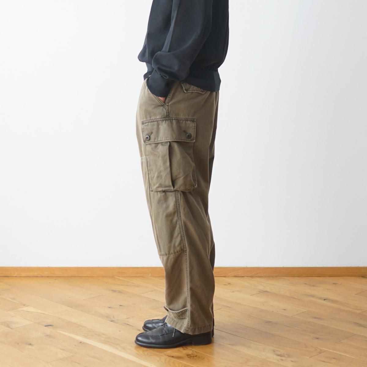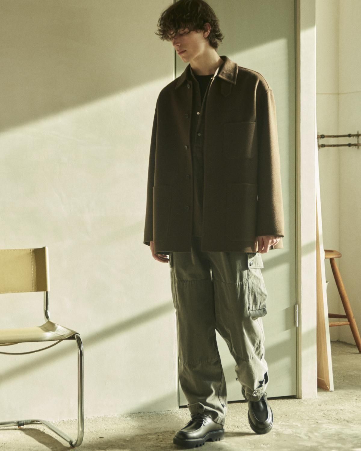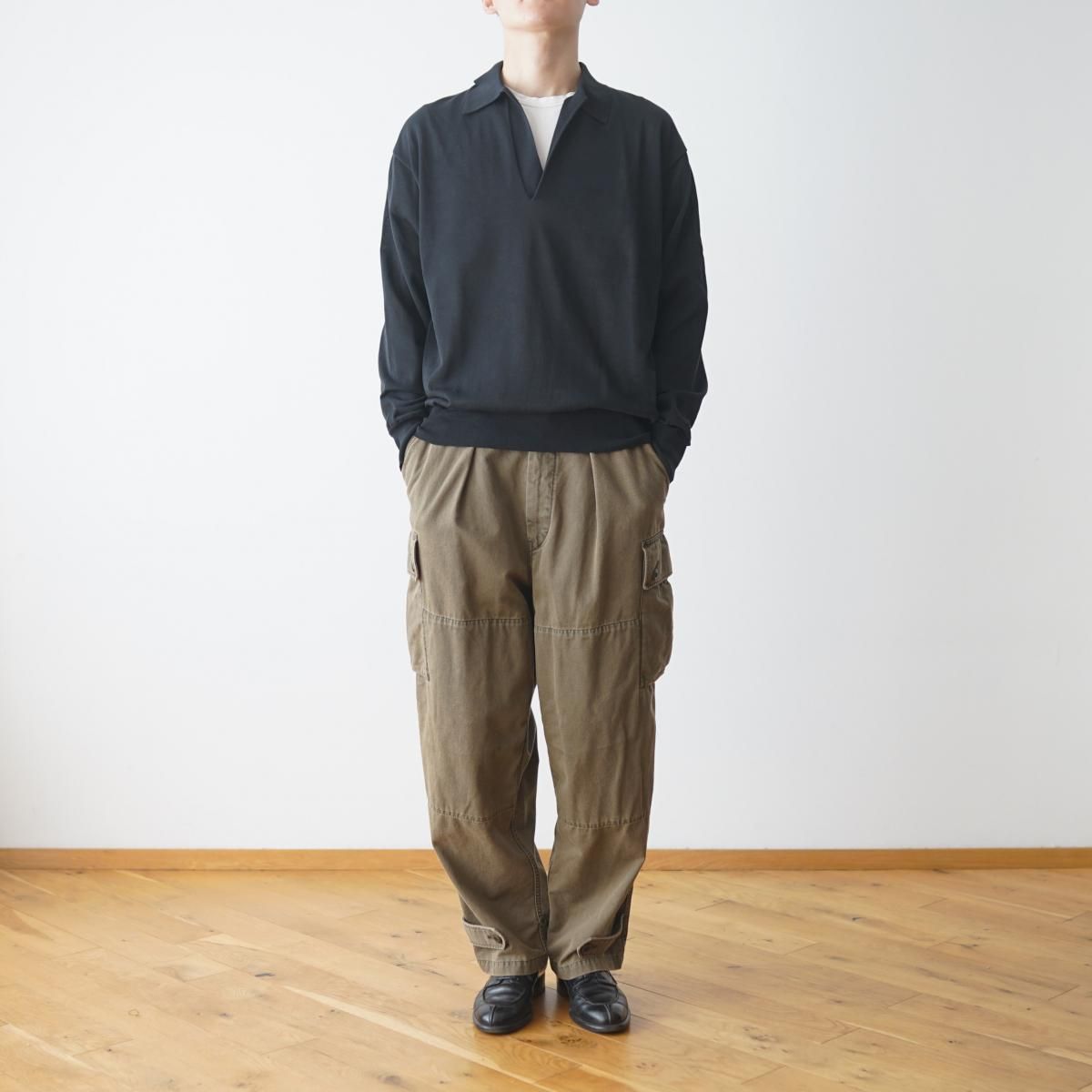 上品なコットンツイルに顔料を乗せ、特殊な洗い加工で独特なユーズド感を表現しました。裾アジャスターでシルエットが変えられるカーゴパンツです。