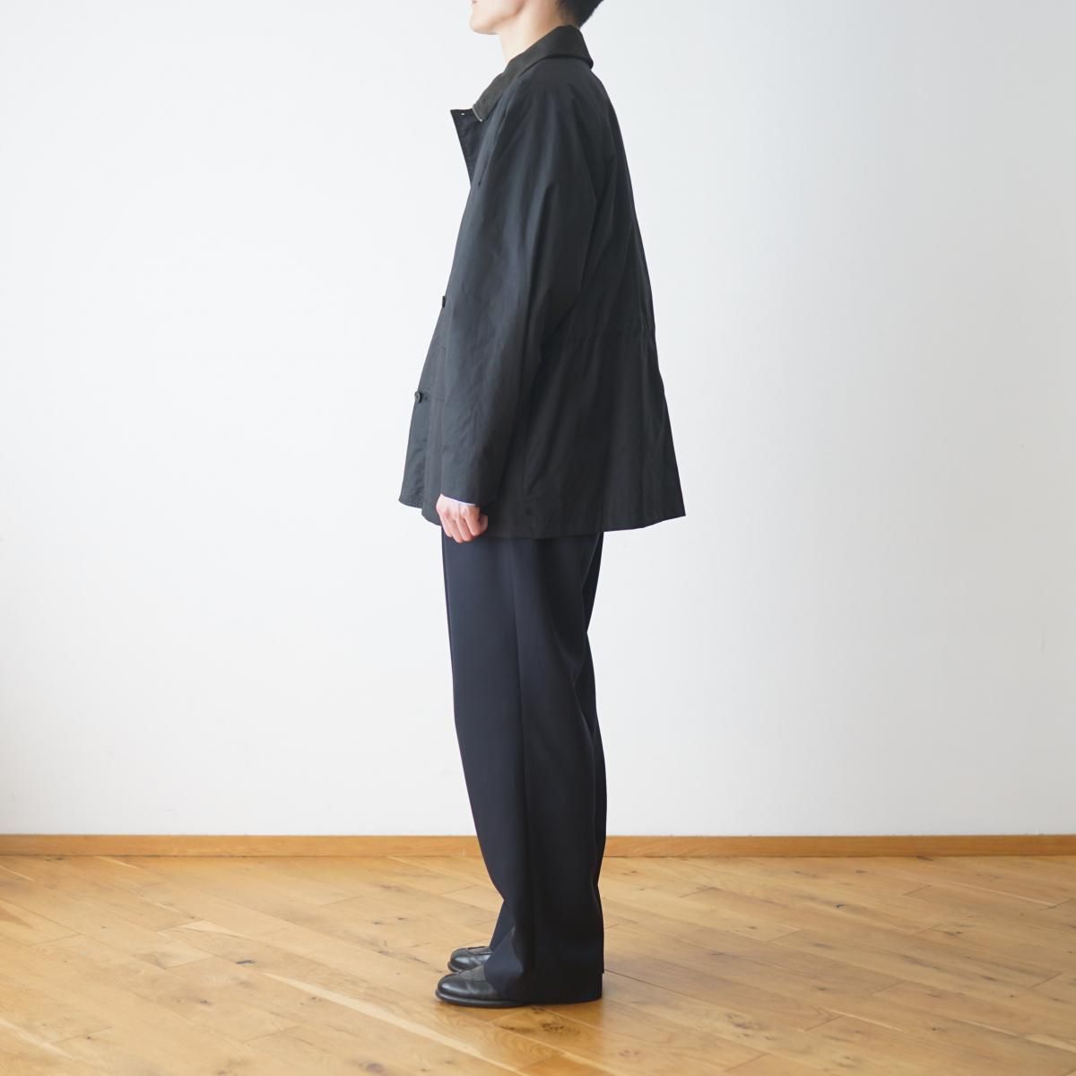 The CLASIK の FISHING JACKET です。身幅、アームに余裕をもたせたミドル丈のフィッシングジャケット。前立ては LAMPO 社製のブラックジップ、ホーンボタンを採用した比翼仕立てとなります。襟元はコーデュロイ切り替えが施され、ジップでネックを立てて着用も可能となります。身頃内部のドローコードでシルエットの調整が可能です。The CLASIK らしくミニマルで美しいシルエットが魅力なアイテムとなります。