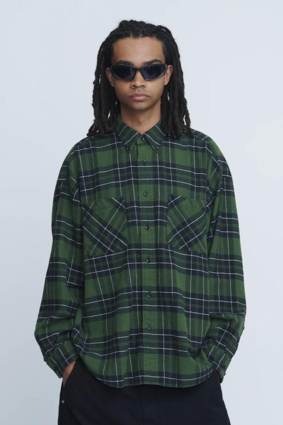【10/6発売】【25AW】【INSCRIRE / アンスクリア】 FLANNEL LOOSE FIT SHIRT - GREEN CHECK