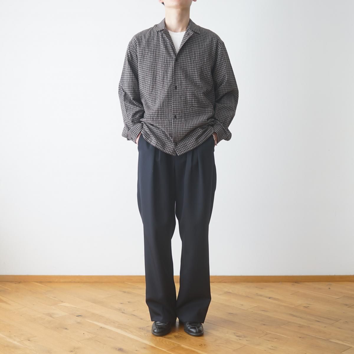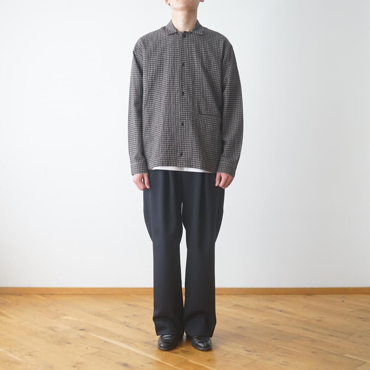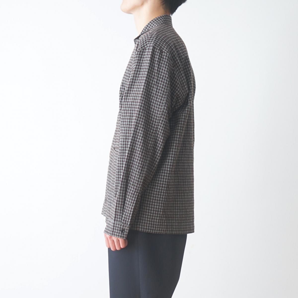 sage'NATIONより、SIESTA SHIRT のご紹介です。リラックス感のあるシルエットは、日常から仕事まで幅広く対応。落ち着いたギンガムチェック柄とダークトーンで、装いに深みを加えてくえます。スクエアカットのネックライン。左脇にシングルインシームポケット付き。秋冬のレイヤードに最適な一着。